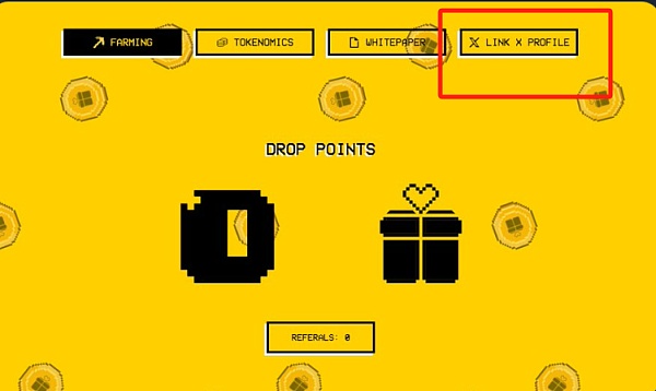 点击页面右上角的“LINK X PROFILE”按钮,将你的推特账号与DropCoin活动链接起来。