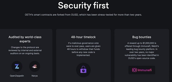 安全性至关重要,因此 OETH 建立在经过验证的 OUSD 代码库之上,并经过