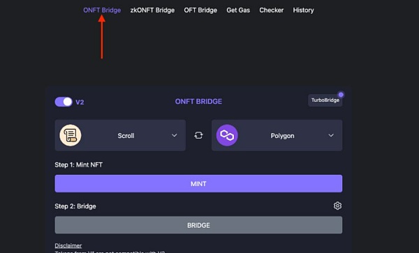 连接您的钱包 点击“ONFT Bridge” 多边形桥