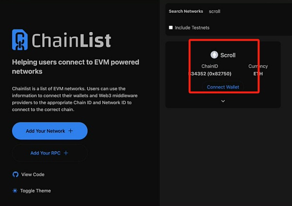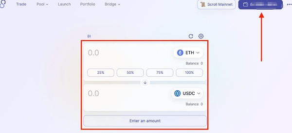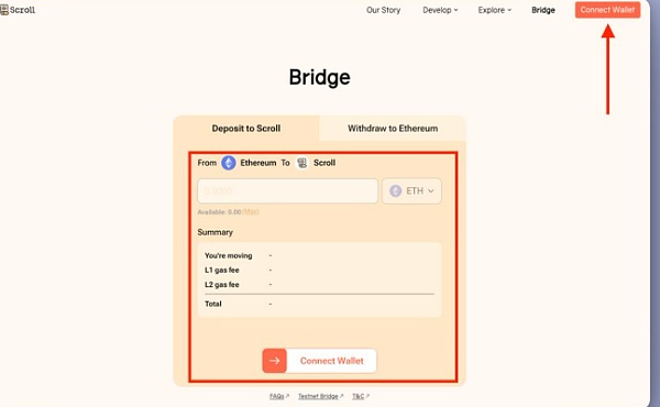 连接您的钱包 将一些 ETH 转移到 Scroll