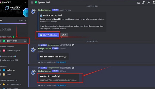 首先进入官方discord:https://discord.gg/BVUFuCje进入get verified频道 →点击Start Verification认证 →选择正确答案完成认证!