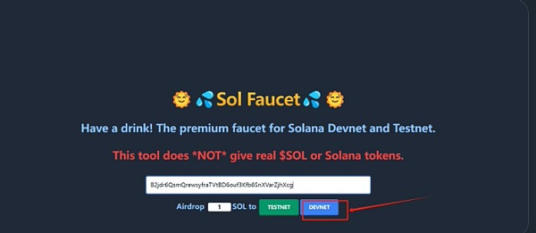 输入你的地址,点击Devnet进行领水!