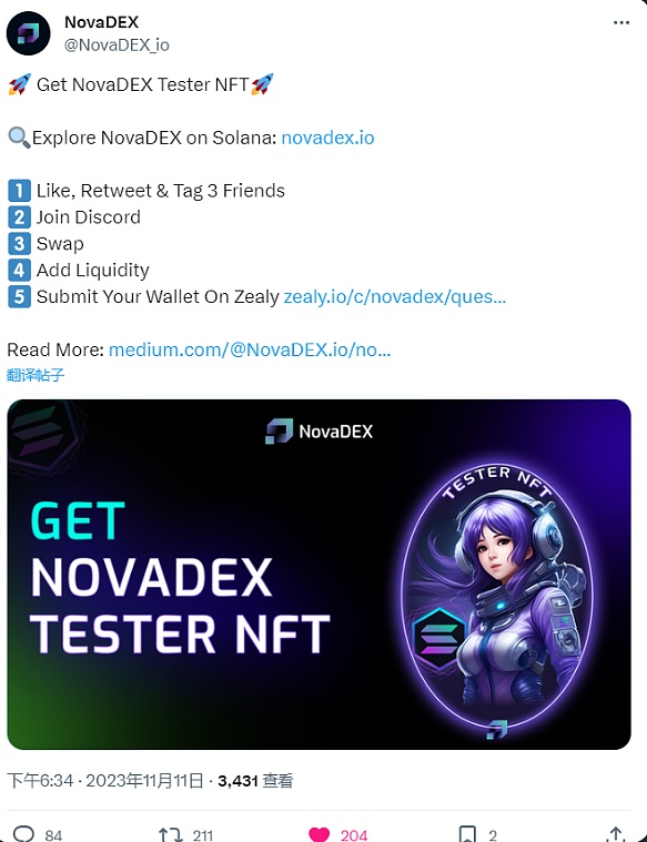 NovaDEX_io 是一个专注于sol生态的集中流动性协议,看了一下,中文频道没人我是第一个,代币经济学都还在设计,目前总参与人数不足500人,大家速度跟着我,拿到早期贡献者NFT!