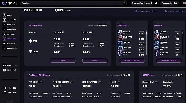 ANOME 是新一代的NFT资产发行与借贷协议,是一个NFT+DEFI 结合的WEB3 游戏资产平台(支持NFT卡牌游戏的发行、交易、借贷)