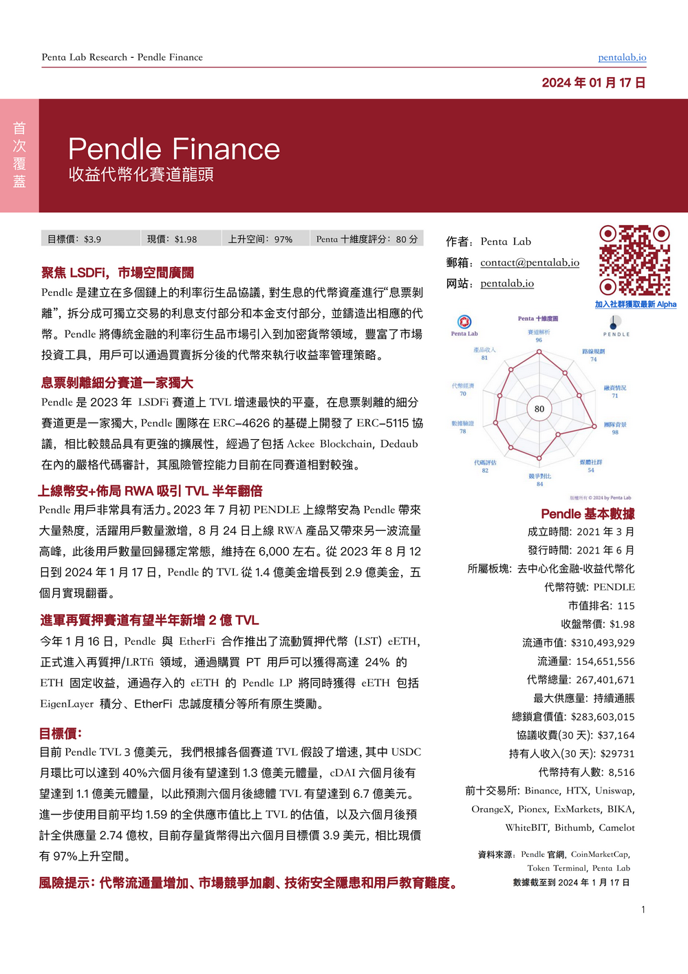 Penta Lab首篇深度研报挖掘PENDLE大涨40%创新高