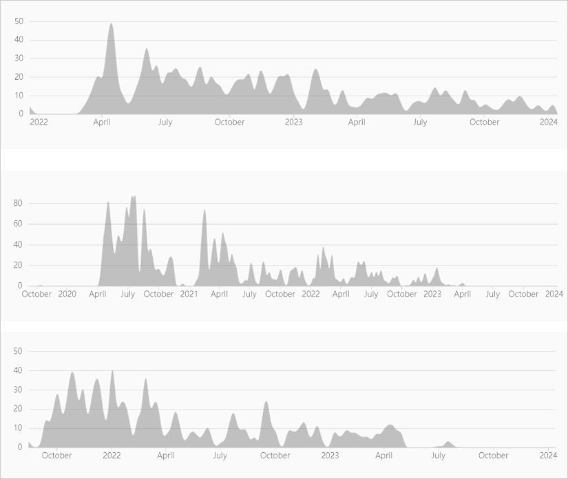 图表 16:代码提交记录对比,从上至下分别为 PendleFinance、YieldProtocol、SenseFinance