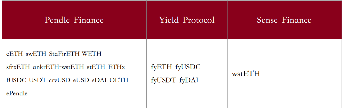 资料来源:Pendle官网,YieldProtocol官网,SenseFinance官网,Penta Lab