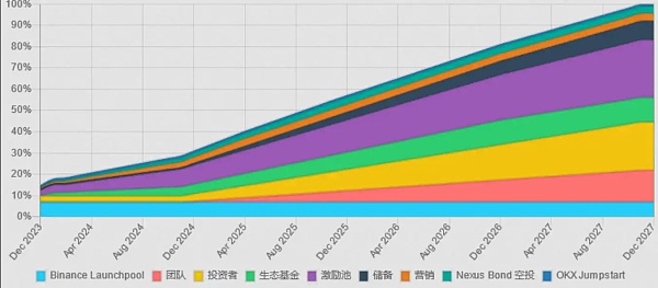 ACE 主要用于 Fusionist、ACE Arenas 以及 Endurance 之上,代币首次发行为 147 万个,占总量的 1%,有一定的解锁期,从下图可以看到初始解锁量相对较少,市场抛压并不大。