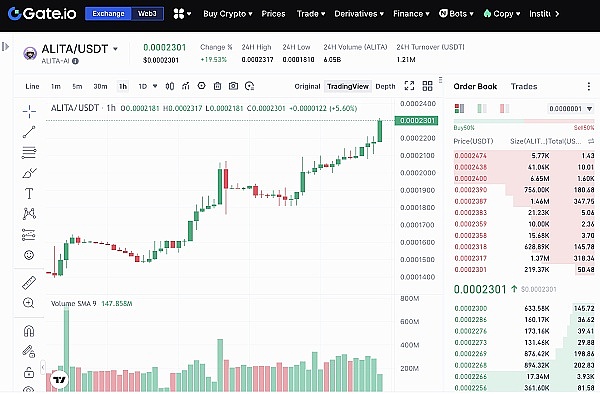 据GATE行情显示,截至3月7日22:30(UTC+8),$Alita在Gate交易所的价格3日内涨幅77%,价格突破0.00023美元,再刷历史新高,三日连续登陆Gate.io涨幅榜。(行情讯息:https://www.gate.io/zh/trade/ALITA_USDT)