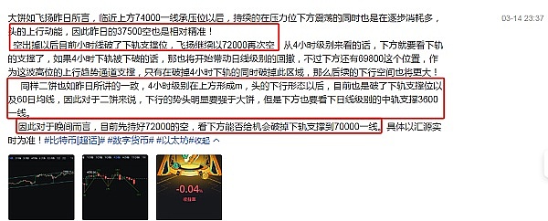 因此对于日内来说,飞扬72000的空目前已减,仓,剩余的就等下方破支撑以后拿一波中线,不去做过于频繁的短线交,易,具体以汇源实时为准!