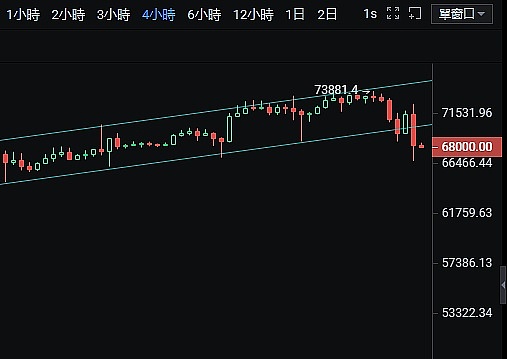 小时线目前破了上行趋势通道,处于趋势通道支撑位下方运行,那么在前期支撑70000一线,也会构筑成日内的反,弹压制位;4小时目前破了下方的下轨支撑以及60日均线双重支撑,因此后续若不能站稳60日均线上方的话,以4小时的K线形态,下方处于一片真空地带,下方还有较大的下行空间;日线看,下一支撑处于65000一线,因此对于日内来说,下方可先等65000一线,等破这个区域的话,那么趋势也将彻底被扭转。
