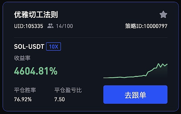 这项名为“优雅切工法则”的策略,以其UID:105335和策略ID:10000797标识,基于一系列复杂但高效的算法运行。它在SOL-USDT交易对上使用了10倍的杠杆,通过精密计算的入场和退出点,实现了高盈利。