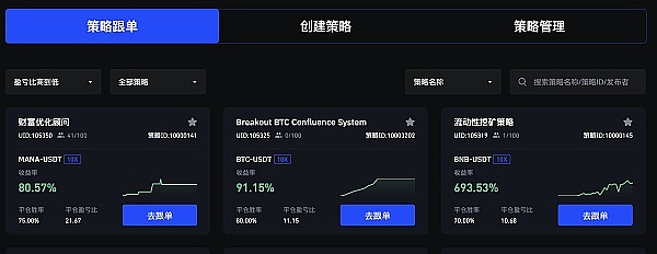 在3EX AI交易排行榜中,盈亏比最高的三个潜力策略展示了令人印象深刻的统计数据,这些数据为用户提供了根据历史表现选择交易策略的依据。以下是排名前三的策略概览:
