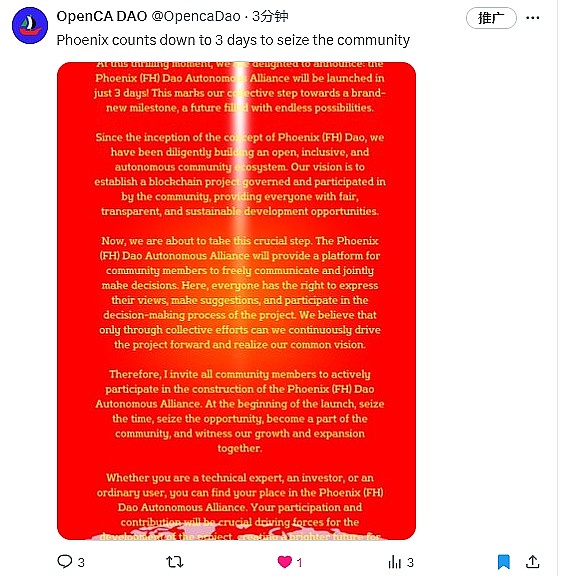Title: Phoenix (FH) Dao Autonomous Alliance Countdown: 3 Days Left, Seize the Community Opportunity!