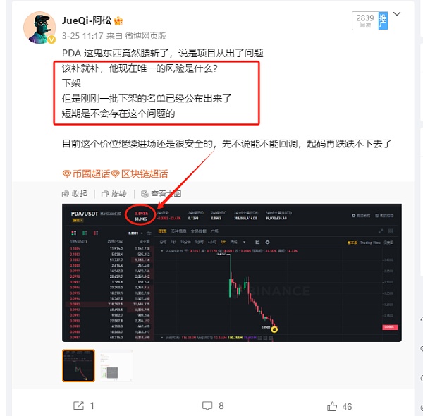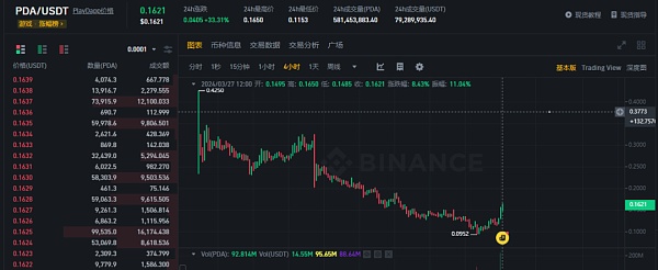 还有一个饱受争议的币子,PDA,之前是说项目出问题,然后松哥一看,这么低的价位,干他喵的(实时价0.235),然后我们看走势,直接就给我干傻眼了....