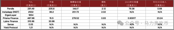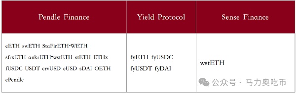 资料来源:Pendle 官网,YieldProtocol 官网,SenseFinance 官网,Penta Lab