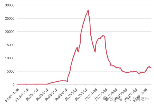 不过 LSDFi 还有很大市场空间,根据 Dune 的数据,截至 2024 年 1 月 16 日,信标链上质押的以太坊质数量已近 2900 万枚,比例达到 24%,市值达到 5800 亿美元,而头部 LSDfi 协议的累计 TVL 占比仅仅 0.3%。