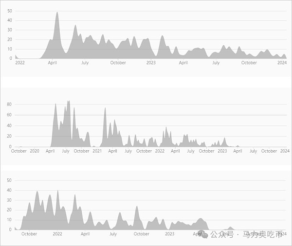 图表 16:代码提交记录对比,从上至下分别为 PendleFinance、YieldProtocol、SenseFinance
