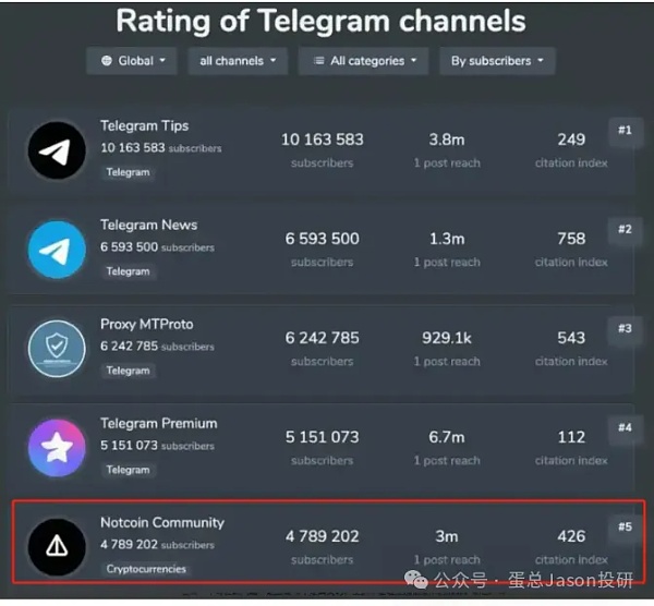 Notcoin 是一款免费且易于使用的 Telegram 游戏,其玩法主要是人们通过点击手机屏幕来赚取金币,自 2024 年 1 月 1 日上线以来,人气激增,当前该游戏的参与人数超过3000万,日均活跃达到500万,成为Telegram上数据排名第五的频道。