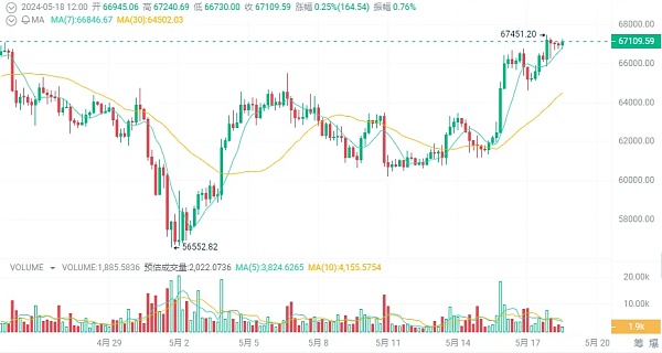 今天,比特币价格飙升,突破 67,000 美元大关,美国现货比特币 ETF 资金大幅流入 2.22 亿美元,表明市场情绪看涨。