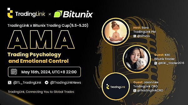 5月16日晚上22点,TradingLink联合Bitunix举办了一场精彩绝伦的AMA会议。这次会议聚焦于交易心理与情绪控制,吸引了大量交易爱好者和专业人士的关注。主持人Sara与两位嘉宾——TradingLink的CRO Jason Lee和Bitunix的明星交易员Kiki,共同探讨了交易中的心理战术和技术策略。