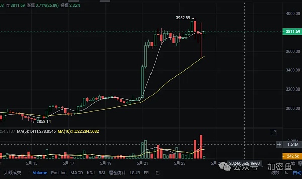 至于市场走势部分,以太坊在清晨四点多时,疑似因为网上传言「SEC 将现货以太坊ETF 决议延后6 小时」而一度插针3,523 美元,不过后来谣言被驳斥后有所回升。