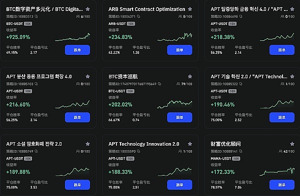 3EX平台上的一些交易策略在近期表现出色,获得了显著的收益。这些策略各具特色,覆盖了从趋势跟踪到套利交易的各种类型。以下是一些表现优异的策略: