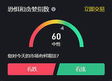 市场的恐慌与贪婪指数为60,对于韭菜来说已经是习以为常了,还没达到明显的恐慌,但是这个数据一旦高于90以上很多的时候会是市场Fomo的时候,那我们就要特别注意了,同样,低于40的时候,就是熊市非常惨淡的时候,适合我们定投现货进场时机,“买在无人问津时,卖在人生鼎沸时”,价值币一定是市场洗盘最惨淡的时候,买入后耐心等待就好。