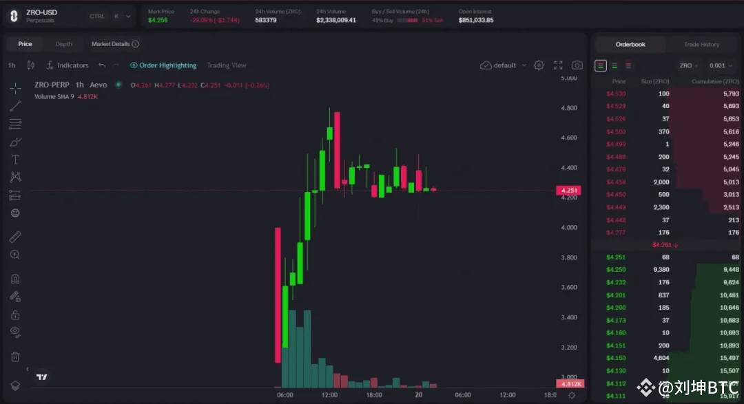 据场外交易协议 Aevo 显示,LayerZero(ZRO)场外价格在昨日开放空投查询后最高触及 4.8 美元,目前有所回落,现报 4.25 美元, 24 小时交易量超 230 万美元。