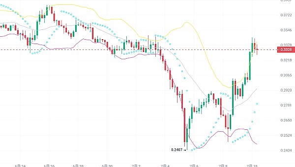 这表明价格可能保持强劲上涨趋势并达到 0.43 美元至 0.45 美元之间的上部阻力区。