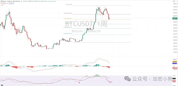 1、如果73777→现在的调整是针对24901以来的上涨,那么现在已经回撤完成本轮上涨的斐波那契0.382;周线级别,RSI指标48;