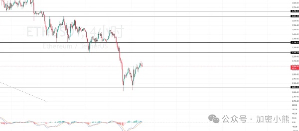 小级别开始缩量了,而且4h级别即将高位死叉,短期可能还会向下回踩一波,关注3k支撑线,不跌破的话还有机会上涨