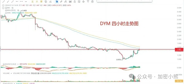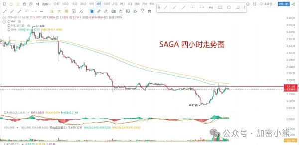盘面分析:SAGA和DYM目前都反弹至短期压力位附近,接下来的表现至关重要。我们需观察哪个标的能更有效地突破,并展现出更强的气势。这里的气势主要指突破的力度,包括空间和时间。时间短而空间大的突破说明力度强劲,气势更足。
