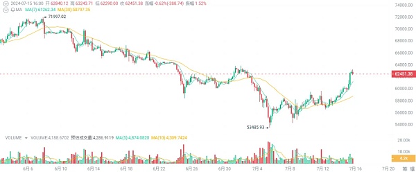 比特币在特朗普遇刺事件后开始拉升,市场逻辑非常简单:特朗普当选的概率增加,而他对加密行业的支持力度更大,因此市场看好比特币。