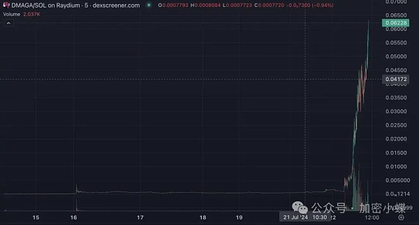 有马斯克「带单」,DMAGA 在凌晨开启暴涨,数小时内涨幅超 50 倍,截至撰稿时市值已经突破 6000 万美元。
