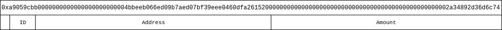 假定我们有一个叫做 calledmyFunction 的函数,接收一个地址和数字的数组作为参数,即 myFunction(address,uint256[])。该函数的函数签名是 0x4b294170。地址这一项,我们照上面所说的操作。因为我们的数组包含 3 个对象,数组的长度用十六进制表示为 0x3。然后每个对象都要占据恰好 32 自己的空间,且数组要放在所有其它参数之后,所以数组会从 32+32 = 64 字节之后开始。