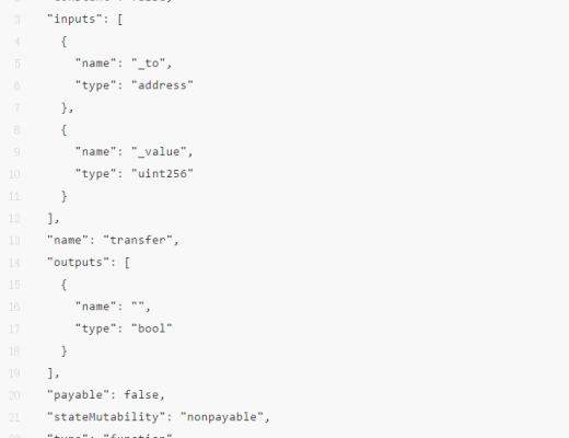 即使合约的所有者不上传合约的 ABI,也能够解码 input 数据(对大多数合约而言)。因为,ERC-20 合约函数的签名都是一样的,因此 Etherscan 只需使用一个预定义的合约 ABI 即可服务大部分合约。举个例子,ERC 20 合约的转账函数的合约 ABI 如下文所示: