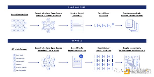 区块链针对交易所在的区块进行验证并达成共识,而预言机网络则针对外部数据和链下计算达成共识。