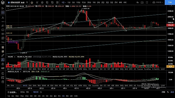 以太坊昨日下跌后晚间陷入震荡走势,早间开盘行情向上拉伸,最高触及1888一线受阻回落,空头加速下跌至1840支撑反弹,恭喜跟上昨日思路的朋友多单获利40点,目前币价在1856附近运行,四小时级别短期1840支撑有效,同样上方1880阻力也很强,技术面macd空头逐步放量双线死叉向下延伸,ma7拐头向下指引,整体来看空头更占优势一点,小时级别k线由阴转阳,走出一波反弹但预计空间不大,上方先关注1860-1880区域,突破才会上行,日线级别若能收线在ma7下方后市则反抽做空,日内思路建议反弹高空为主低多为辅,上方压制1860-1880,下方支撑1840-1810