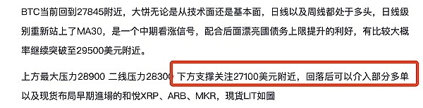 在接下来的短期中,由于美股的支撑,预计市场会出现震荡上涨。然而,在没有明显资金流入的情况下,特别是在大饼没有突破3万点的压力前,我们在仓位上应该谨慎。