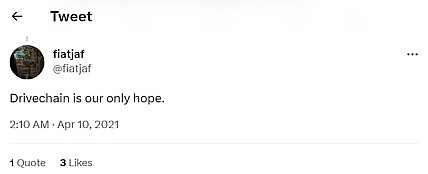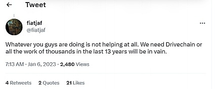( Fiatjaf发推表示:我们需要Drivechain,不然数千人在过去