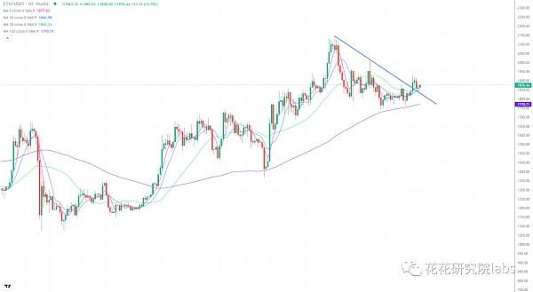 以太准确的回踩到趋势线,确认支撑止跌反弹,目前的走势强于大盘,预计回踩之后震荡向上为主。