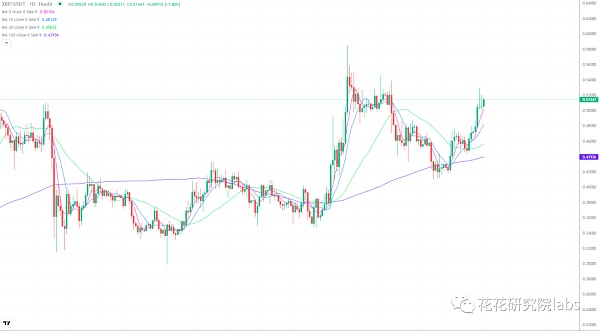 xrp的走势还是强势,关注今天这根阳线吧,如果最后能收中阳线,后面大概率继续上涨,如果收冲高回落的上引线,就要去注意风险了。