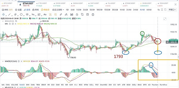 ETH短线操作参考: 可以在上方1878--1890区间挂单轻仓去空头 止损1920附近 止盈区间1815--1780