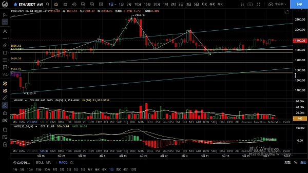 以太坊昨日波动不大整体围绕1900附近上下震荡,随后空头发力走出回落,低位跌至1881一线支撑反弹,进场的可继续持有,目前币价在1894附近运行,四小时级别行情三次回踩至ma30均线支撑未破形成三底走出反弹,但走的比较慢,macd多头转空双线粘合,ma7拐头向下指引,上方关注ma7和14日均线压制情况,目前走势没什么变化,周k若收阴线,预计将延续空头继续下行,整体思路依旧是不破1930反弹高空为主,上方压制1910-1930,下方支撑1880-1860