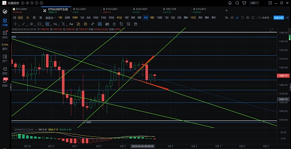以太坊上个交易日白盘整体处于震荡行情,一天的波动不超过10个点,今天凌晨开启了下跌的态势,昨天长路也在文中及实时策略给出了做空的策略,跟上操作的朋友空单可拿下一波利润。