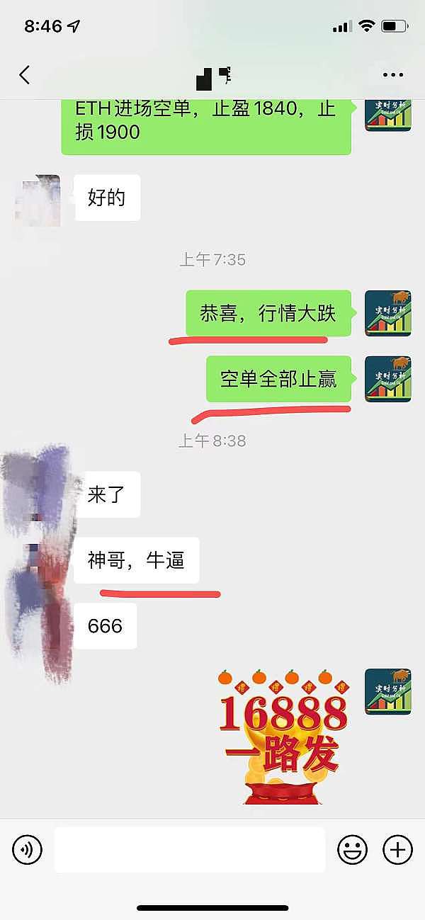 昨日的行情还是非常不错的,大跌,ETH方面:昨天早晨ETH也是从1910一路下跌到1870附近后开始震荡,晚间凌晨的话也是暴跌一波,最低到达了1800附近,小神也是在下午最高的点位1870直接布局的空单,止盈30个点,完美拿下,可查看下面实时布局单: