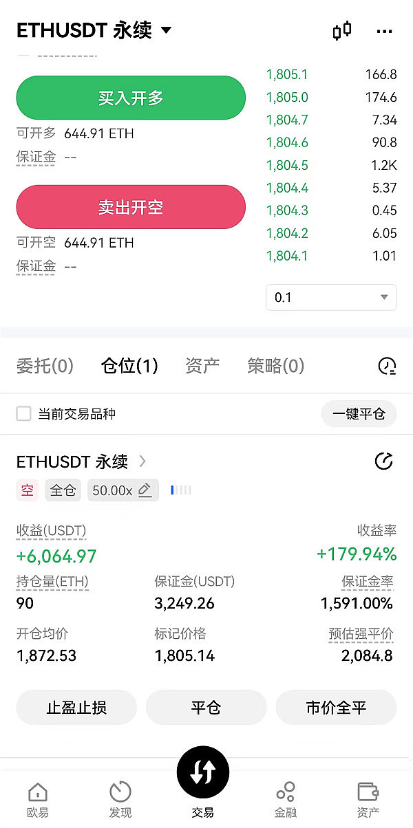 昨日以太坊实时现价空单,直接斩获将近70个点的利润,恭喜跟上的朋友吃肉;跟我做单,盈利,你也可以,每日实时策略会在上一篇文章(诸葛谈币寄语)中实时更新