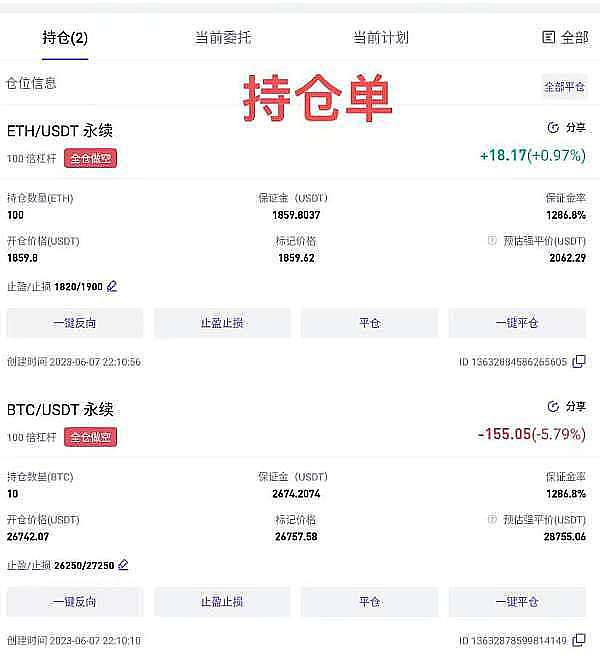 小神说币:恭喜 比特币(btc)空单拿下2000点 以太坊(eth)空单拿下100点 给力