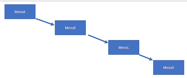 上面相邻的菜单都是父子关系,如 菜单D 是 菜单C 的子菜单。